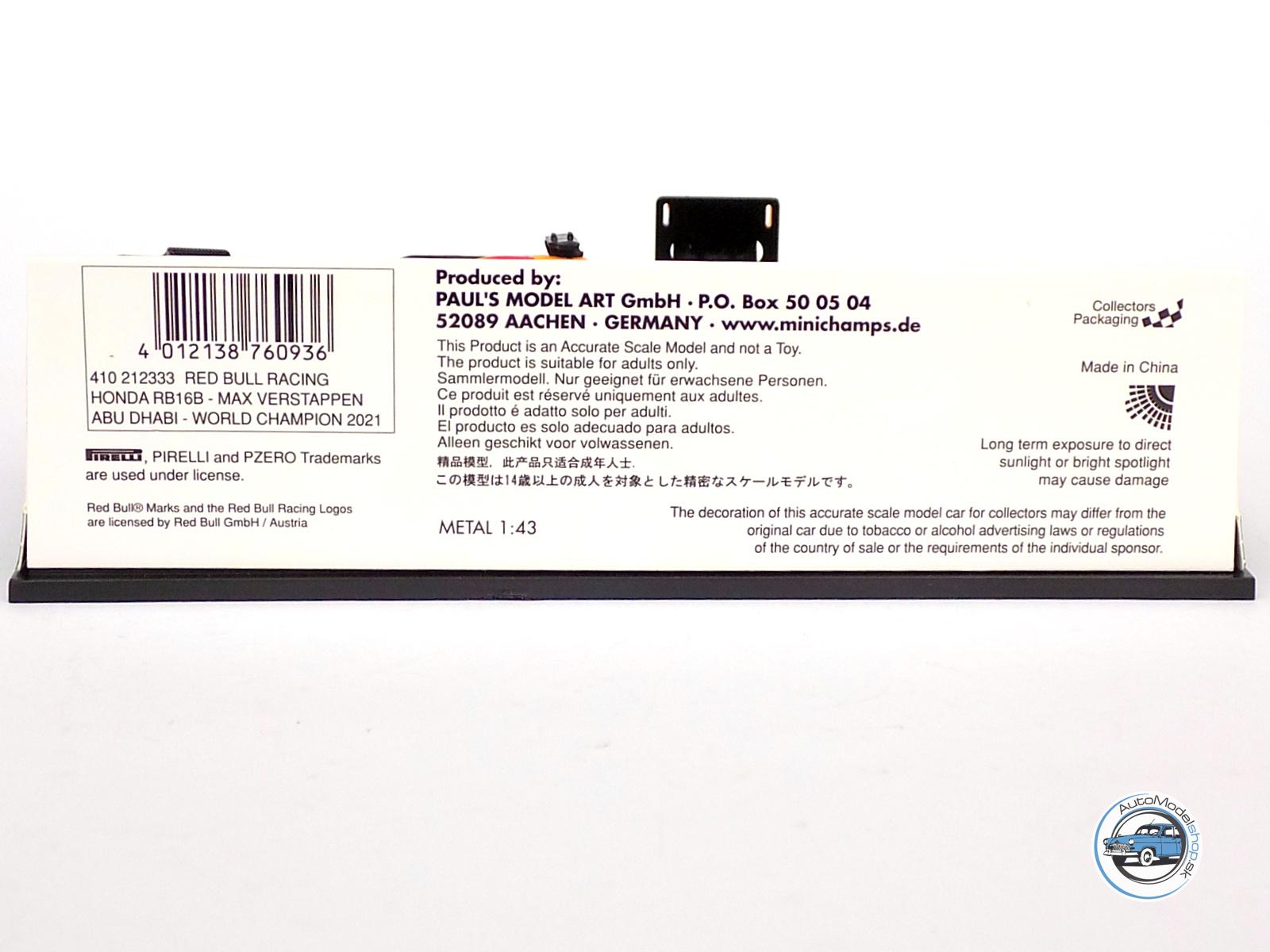 FORMULA F1 : RED BULL RB16B HONDA RA620H TEAM ASTON MARTIN N 33 WINNER ABU DHABI GP WORLD CHAMPION WITH PIT BOARD 2021 MAX VERSTAPPEN – 1:43 MINICHAMPS